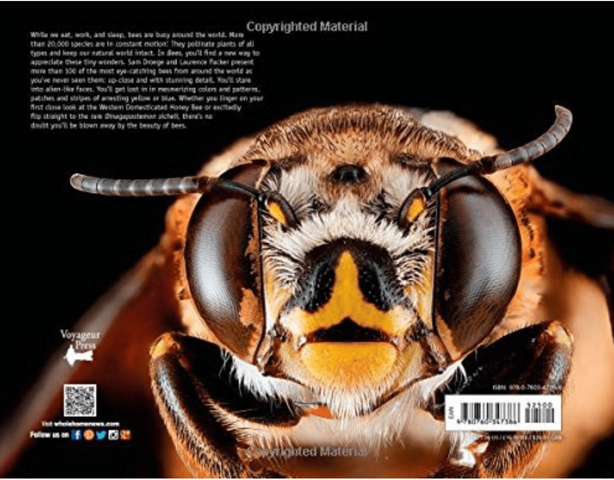 “In addition to exotic and pictorially erotic bee pictures we also peppered our small text paragraphs with super obscure bee facts, subliminal conservation messages, completely made up new sexy English names for all the bees, stories of ancestral bee researchers and plenty of disparaging remarks about ourselves…., because we are passionate and somewhat fanatical bee heads who want to share what we get to see every day. All the continents are covered with examples. ~Sam”